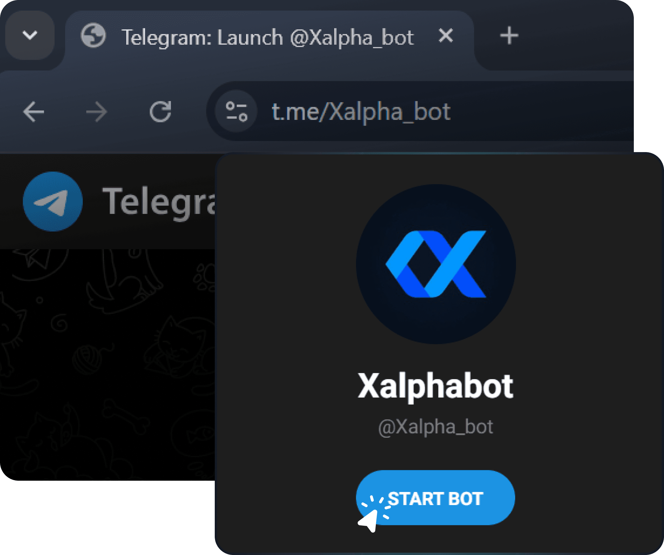 Launch bot on Telegram by simply clicking on the button.